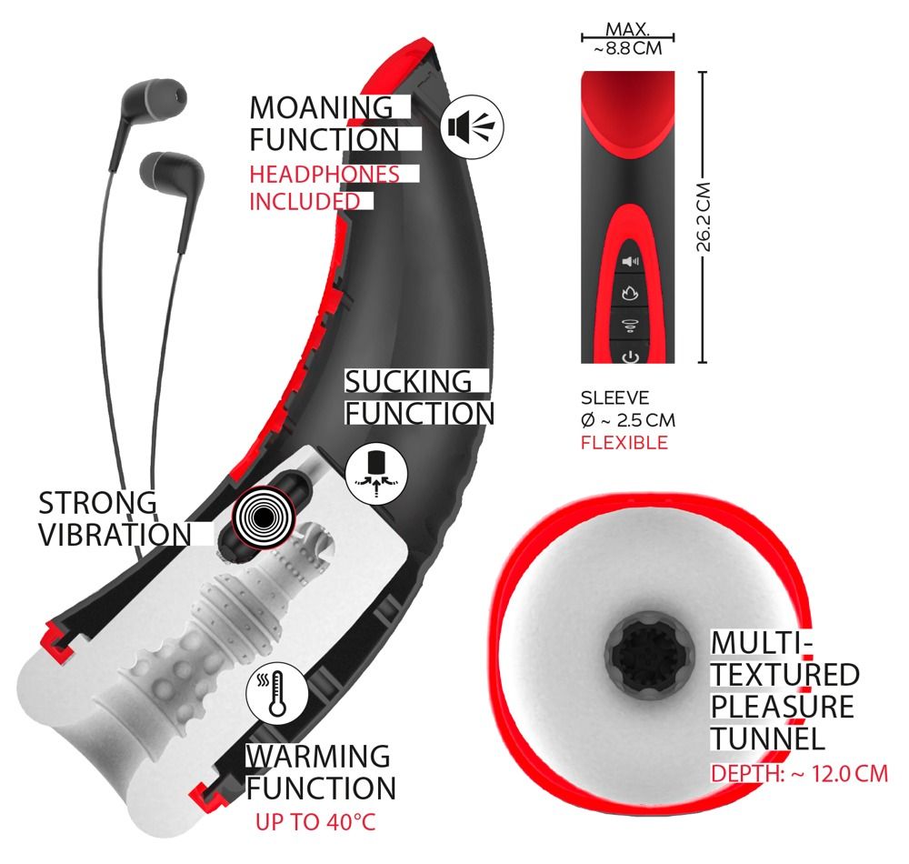 Мощный мастурбатор 03 WYNE, который интенсивно ласкает пенис в полностью автоматическом режиме с 7 режимами вибрации и 3 режимами всасывания. Функция подогрева до 40°C и сексуальные стоны (3 режима) через прилагаемые наушники поднимут вам настроение. Всеми функциями можно управлять отдельно и удобно одним нажатием кнопки прямо на игрушке.