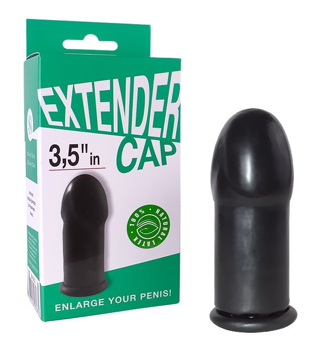 Чёрный латексный удлинитель пениса 3.5 in. Прирост длины - 8,9 см.