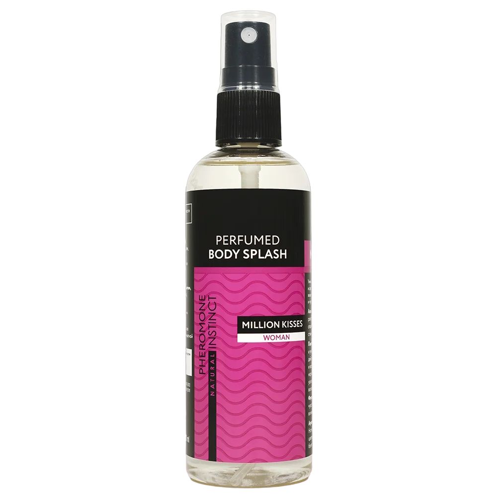 Парфюмированный спрей с феромонами Million Kisses для женщин. Уникальное сочетание манящего и дерзкого парфюма с феромонами окутает ваше тело волшебной аурой нежного и чувственного аромата. Аромат: фруктово-цветочный. Ноты малины, нероли, цитрусов, цветов апельсина, гардении, жасмина, белого меда и пачули. Спрей можно использовать как полноценную парфюмерную воду за счет высокой концентрации парфюмерных композиций, но при этом по очень доступной цене.