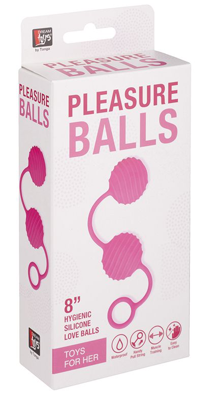Розовые вагинальные шарики с ребристым рельефом. Приятные на ощупь, из силикона.
