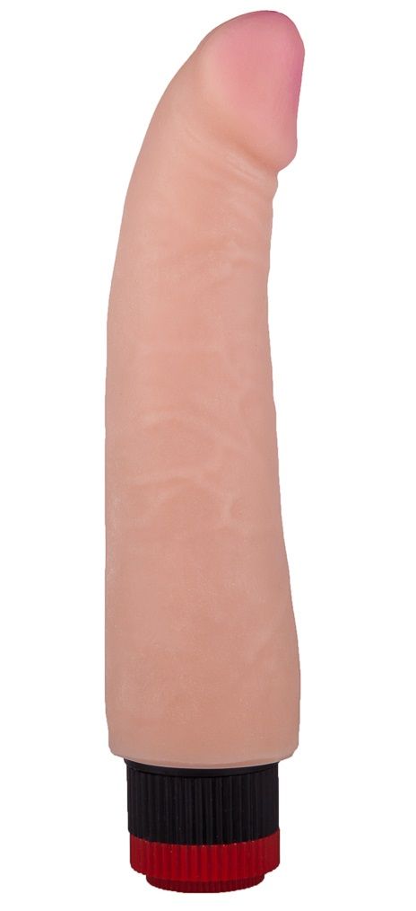 Этот телесный вибромассажёр сможет не раз вас удивить. Сначала – нежной и бархатистой, как у живой плоти, поверхностью из неоскина. Затем – мощной мультискоростной вибрацией, просто управляемой колёсиком. Далее – умением сладко заполнять лоно и нежно массировать стеночки чуть изогнутой по отношению к податливому стволу головкой.